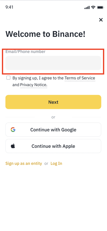 1,打开币安 App,点击【注册】。