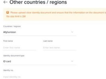 进行ID验证:点击“验证”并开始验证账户,填写国家、国籍和ID信息。