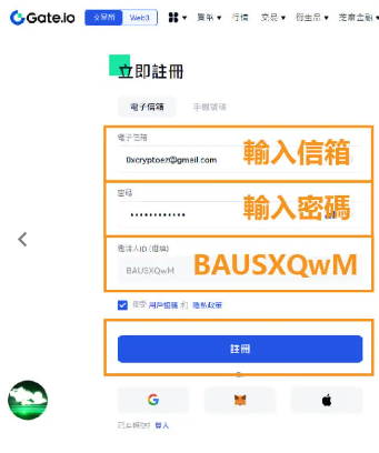 3,勾选Gate的协议和隐私权政策后,点选「注册」