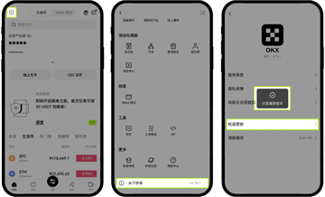 首先点击左上角图标-【个人资料和设置】下拉到最后点击【关于欧易】-【检查更新】