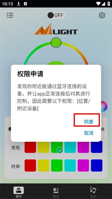 2、授予位置权限可以帮助用户搜索附近可连接的设备,方便他们浏览和查看支持的Nilight灯具。