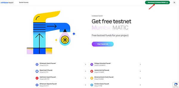 进入coinbase faucet官网,画面右上角点选「Downolad Coinbase Wallet」。