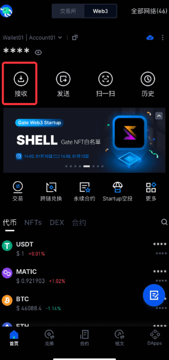 点击 Web3 钱包首页【接收】,在选择币种页点击页面上方【立即体验】。