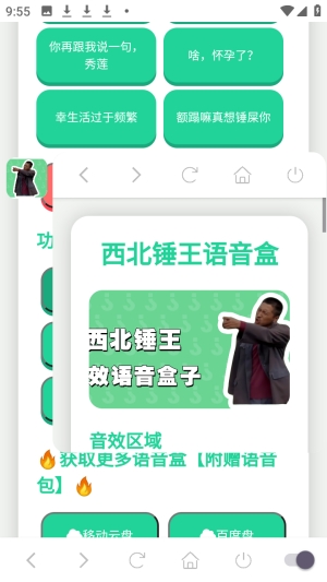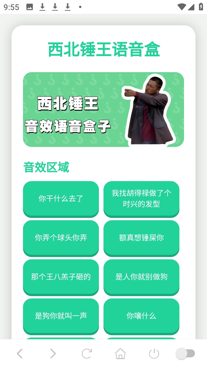 1、软件首页有电视剧人物西北锤王的各种搞笑语音包,点击即可播放。