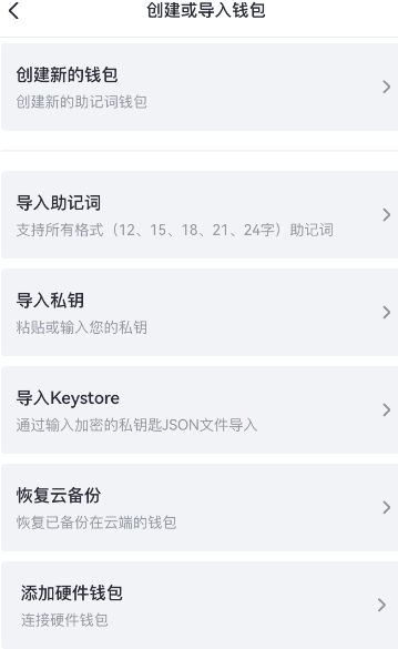 打开yzpay柚子钱包钱包,选择“创建钱包”,输入密码即可创建;如您已有钱包,则可选择“导入钱包”,输入助记词或私钥,即可导入钱包;如您曾在yzpay柚子钱包 App中云备份钱包,点击【恢复云备份】-输入密码,即可恢复钱包。