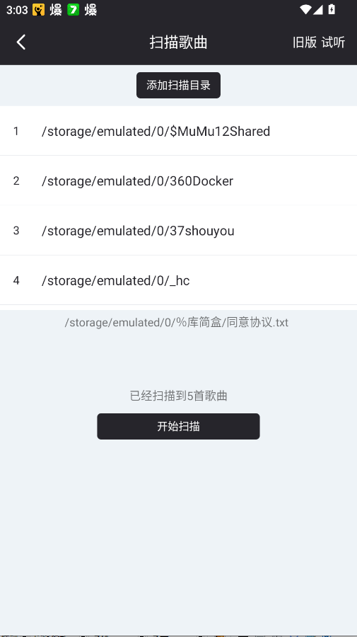 3.在目录列表里选择需要扫描歌曲的文件夹位置。