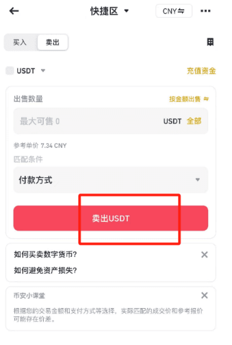 第四步:出售USDT