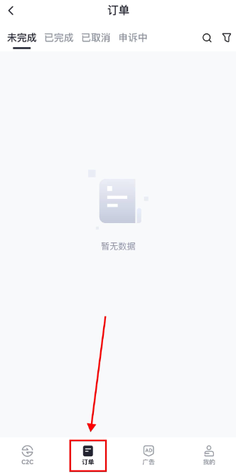 4、订单匹配后,您可以点击页面上方“快捷交易”切换到“C2C”界面,进入订单页面查看订单的详情。