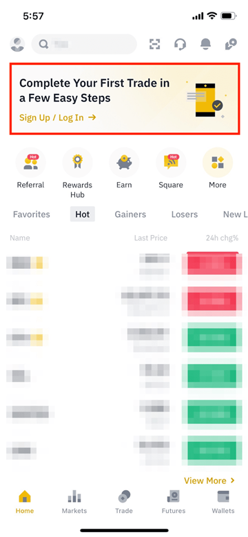 1,打开币安 App,点击【注册】。