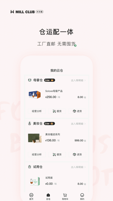 米友圈多仓系统打造多品类分仓,仓储服务同平台共享,多口袋盈利的模式。