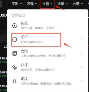 4、点击首页的交易币币进入交易页面