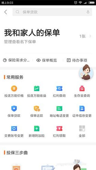 【保单管理】它是您保险合同的小助手,方便您随时掌握保单权益,管理保单合同,为您提供24小时贴心服务;