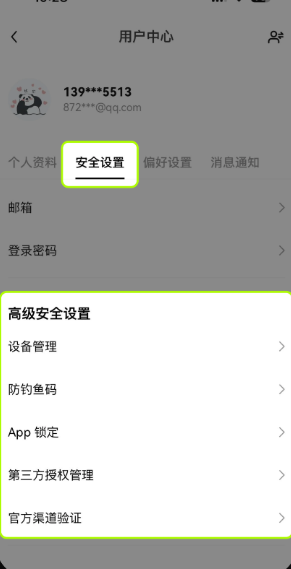 在 App 端首页,点击左上角图标,选择个人资料,进入【用户中心】,选择【安全设置】,在高级安全设置中,进行安全设置,以提升您的账户安全等级。