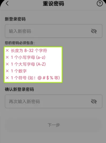 强密码是防止未经授权访问的第一道防线。建议您使用包含大小写字母、数字和特殊字符的复杂密码。确保密码长度至少为 8 个字符。避免在不同账户间重复使用密码。