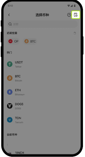 3、选择【资产】—【充币】—【充入数字货币】点击右上角充值记录的图标,即可查看相应的充值进度。