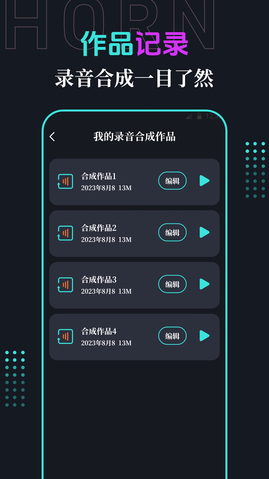 2.高质量录音采集,将手机模拟为便携喇叭,音频自定义循环播放。