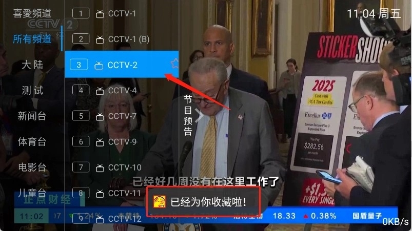 4、可以在左上角喜欢频道查看收藏的频道。