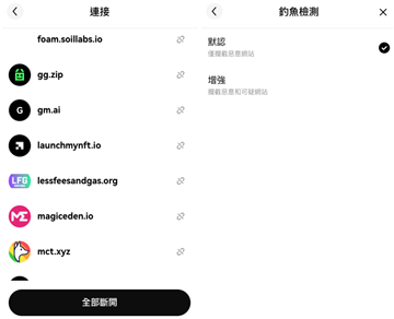 除了授权管理功能,rwa钱包还自备钓鱼网站检测功能,能够辨识钓鱼网站的访问,这项功能可帮助用户避免受到钓鱼攻击,确保他们在使用钱包时能够安心保护个人资讯和数位资产!