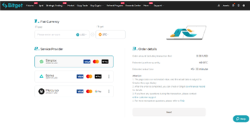 第二步:入金 Bitget 现货帐户或购买 USDT / USDC / BTC / ETH,我们提供两种购买这些币种的方法; 此处提供了 P2P 的详细指南,此处提供了使用法币购买的详细指南。
