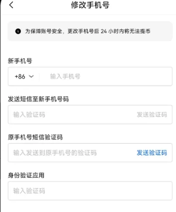 另外需要注意的是修改手机号后24小时内无法提币/卖币。