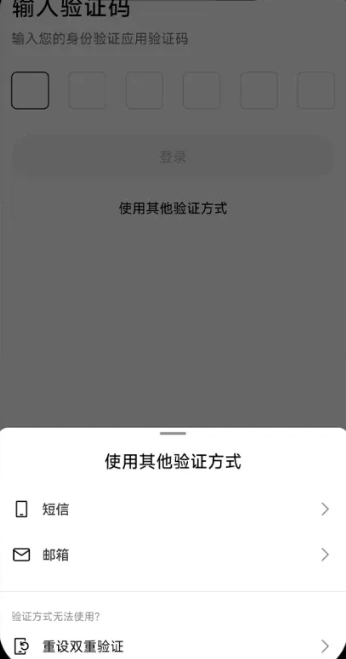 1,在登录页面输入账号、密码登陆账户,在二次验证页面点击【使用其他验证方式】—【重设二次验证】;