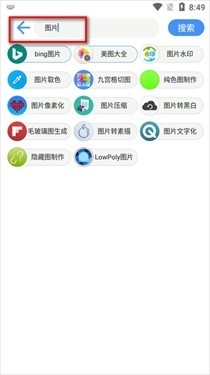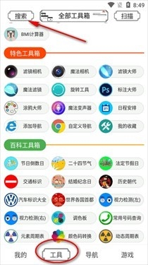 3、点开搜索按钮,可以输入想用的工具关键词快速搜索。