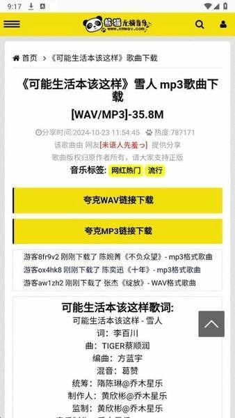 4、选择喜欢的音乐就能够进行多种格式的下载啦