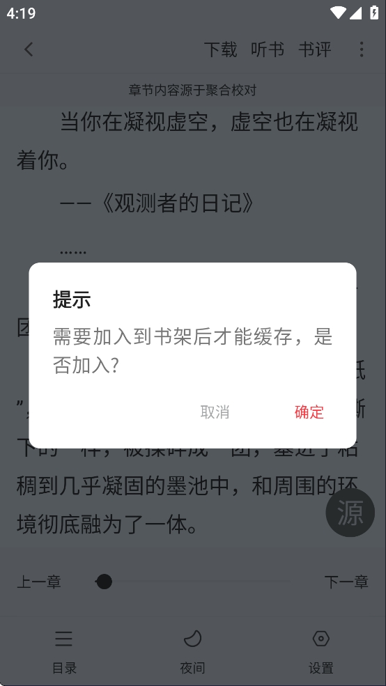 2、一键下载你喜欢的小说,即使关闭移动网络,也可以阅读。