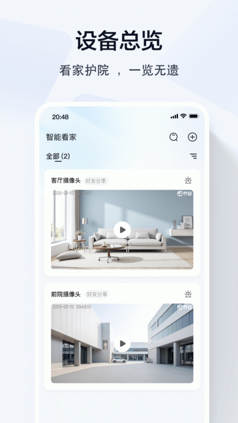 随时查看家里、商铺、办公室等场所的实时视频、云端录像,让您轻松管理办公,随时护家安全,实现远程关爱、智能陪伴,分享精彩生活。