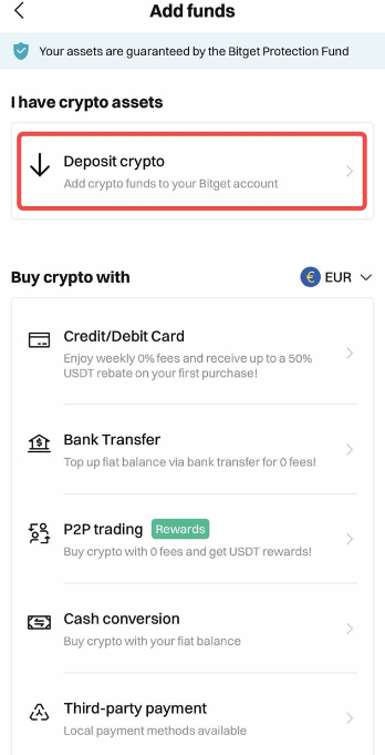 第2步:如图所示,点击从外部钱包充值加密资产的选项。
