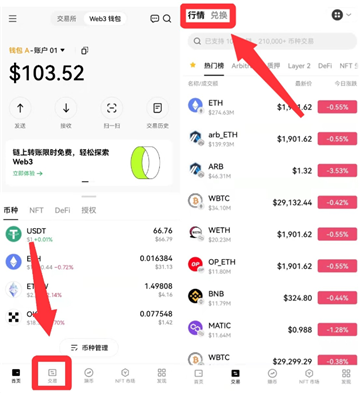 (1)进入【Web3钱包】-【交易】页面。