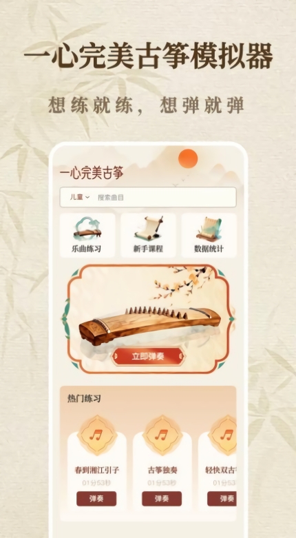 一心完美古筝模拟器是一款可以帮你体验到手机弹古筝的学习类工具,可以让你轻松学习古筝方面的理论知识外,拥有大量的古筝教育培训课程,可以通过触屏的方式进行演奏,让用户能够享受到最真实的古筝演奏体验。