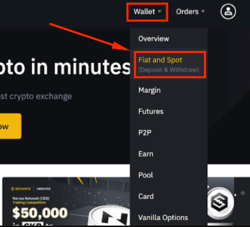 1,登录个人hotbit交易平台账户。登录成功后,将鼠标移至[钱包],点击[法币和现货]。