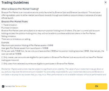 3. 如果这是您第一次使用币安盘前交易平台,请阅读并接受使用条款。