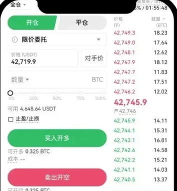 选择【全仓/逐仓】、【杠杆倍数】、【开仓】、【限价委托】—输入【价格】、【数量】—点击【买入开多】—【确定】。