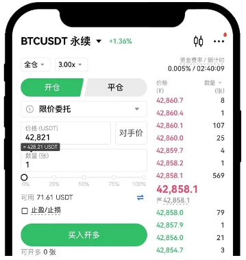 当你预判行情会上涨时,可以选择开仓做多。此处以BTCUSDT永续合约为例,去介绍一下【买入开多】和【平多】。