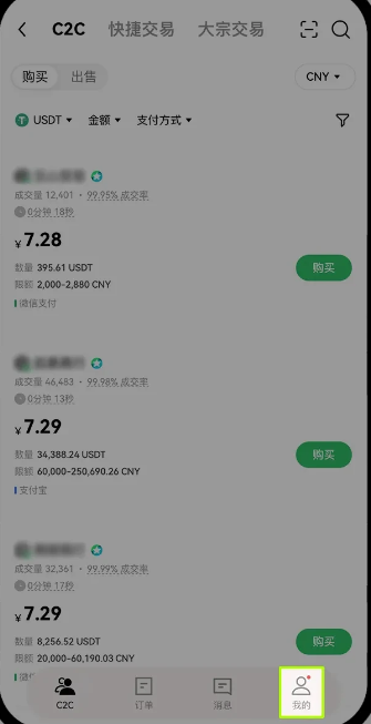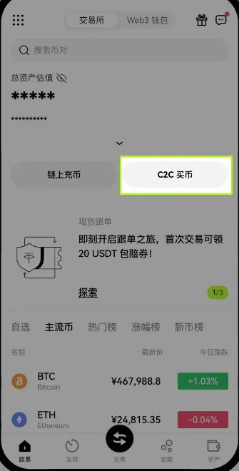 打开C2C交易模块:在欧亿APP或网页版中,找到并点击“C2C交易”的入口。