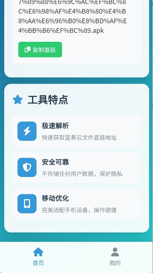 3、专为蓝奏云分享链接设计,输入链接后极速解析出直链地址,获取文件下载链接。