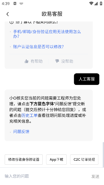 下面看一下欧易客服怎么找: