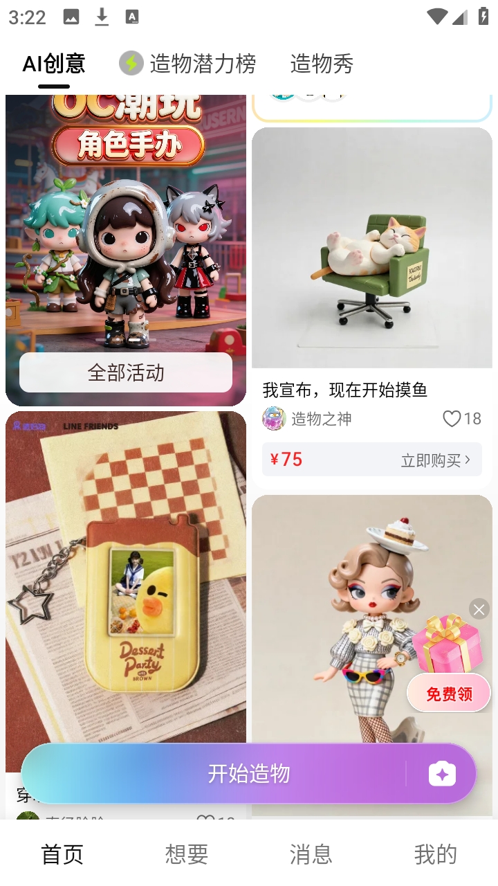 造好物是一款创新型ai造物平台,用户只需输入一段文字描述,平台即可自动生成高精度的产品概念图或3D效果图,让你可以零门槛设计各类商品,不管是3D建模还是批量生产都可以轻松完成,同时还支持创作变现,让你的灵感轻松落地,感兴趣的不要错过。