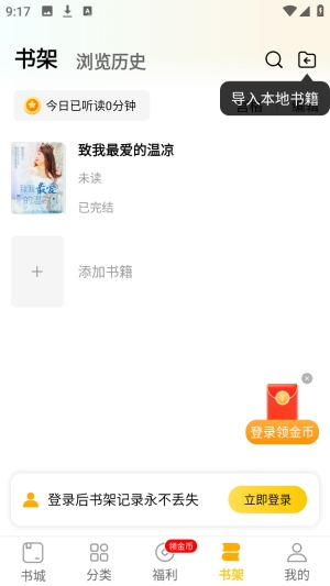3、所有下载的小说都可以在书架页面进行阅读。