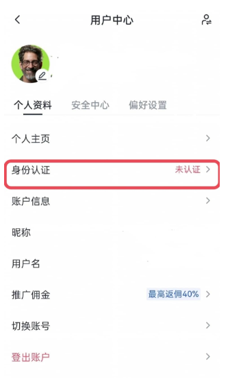 1、打开Gate.io手机App,登录个人账户——点击左上角“头像”,再次点击头像标识——选择“个人资料”——“身份认证”——“去认证”,进行个人身份认证。