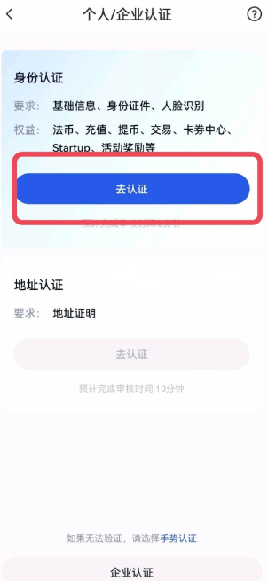 身份认证审核通过后,可以继续点击“去认证”进行地址认证。