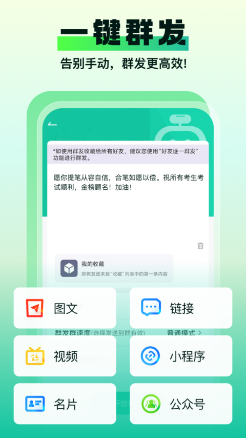 群发消息给微信群或好友,新春祝福,节日祝福,群发让你亲朋好友一个不落下,群发广告的宣传的好帮手。