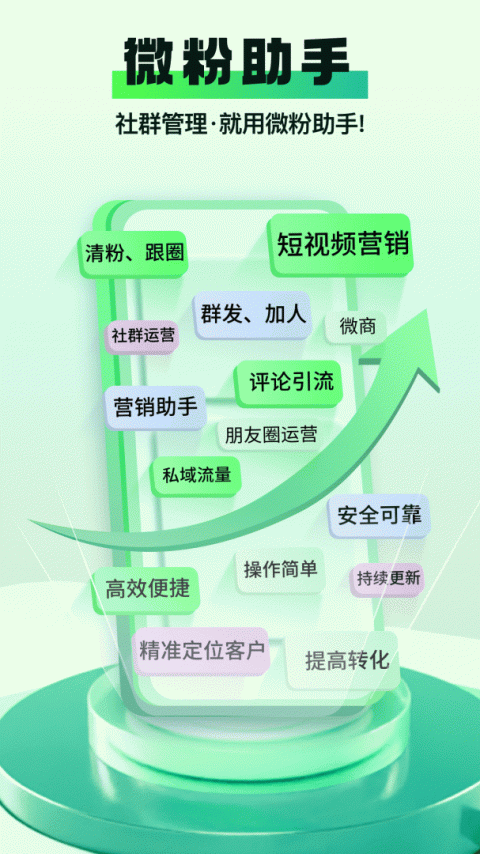 微粉助手app是一款专为微商量身定制的管理工具,深受广大用户欢迎。它集成了多种实用功能,如微信好友管理、清理工具、社交加人、批量添加图片水印等,帮助微商轻松管理朋友圈和客户关系。是发布商品信息、进行群发消息,还是推广营销,软件都能有效提升工作效率,并节省时间与人力成本。用户还可以对图片进行美化,添加必要的内容,以吸引潜在买家。你是刚入行的新手还是经验丰富的微商,微粉助手都是一款不可或缺的得力助手。如果你想提升自己的微商业务,不妨下载体验这款实用的应用。