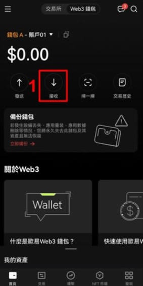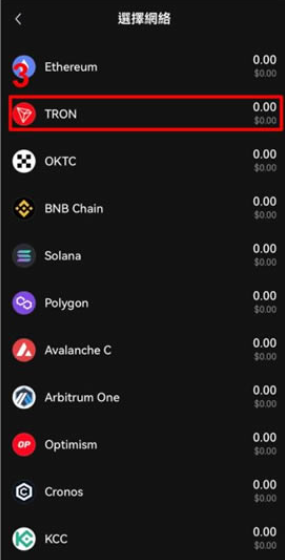 以 USDT 入金为例,在 Web3 钱包首页点击接收 USDT,并选择最常用的 TRON 波场链,也就是 TRC20 网路,接下来就会显示出对应的入金地址或 QR Code,再附近贴上到要出金的交易所或是扫描即可。