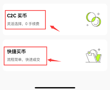 第一步:本站打开下载欧易APP最新版,在首页点击买币按钮,选择C2C买币或者快捷买币,此处以快捷买卖为例。