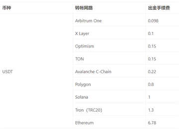 大说树人常使用的USDT 手续费多少?根据不同网路在OKX 出金手续费如下: