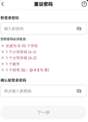 点击登录按钮,然后填写手机号,点击【下一步】,选择【忘记密码】重设密码。按照页面提示,输入新密码,并进行验证,完成后点击【确认】。