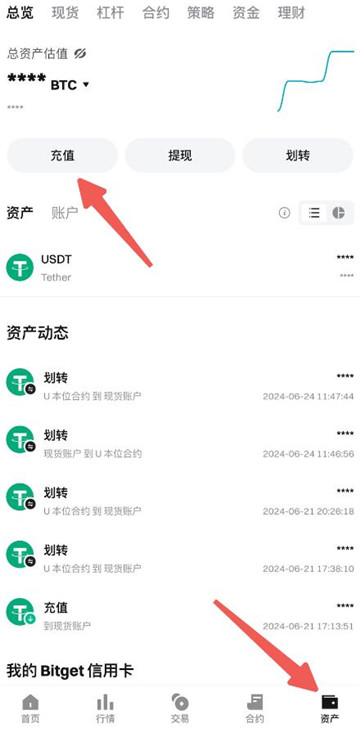 或者,从资产页面点击“充值”。